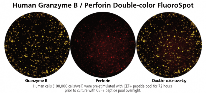 Human Granzyme B/Perforin Double-Color FluoroSpot