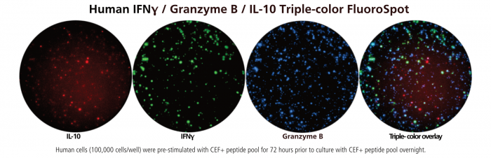 Human IFN-γ/Granzyme B/IL-10 Three-Color FluoroSpot
