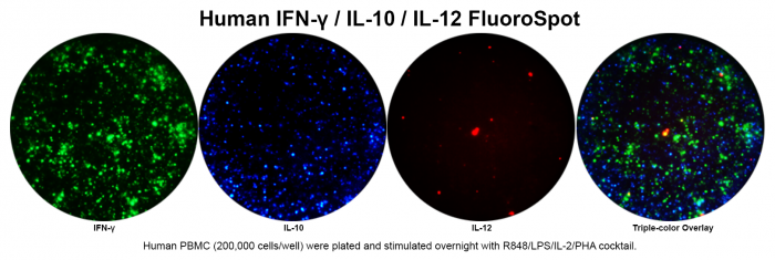 Human IFN-γ/IL-10/IL-12 Three-Color FluoroSpot