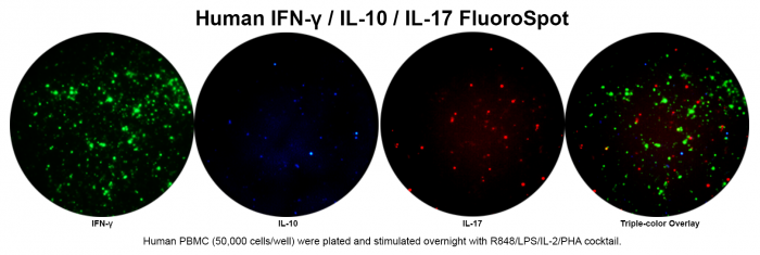 Human IFN-γ/IL-10/IL-17 Three-Color FluoroSpot