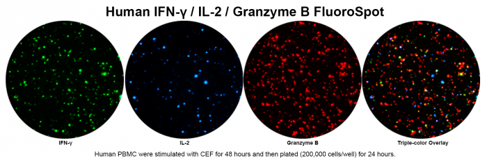 Human IFN-γ/IL-2/Granzyme B Three-Color FluoroSpot