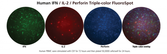 Human IFN-γ/IL-2/Perforin Three-Color FluoroSpot