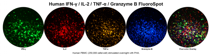 Human IFN-γ/IL-2/TNF-α/Granzyme B Four-Color FluoroSpot