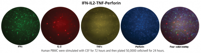 Human IFN-γ/IL-2/TNF-α/Perforin Four-Color FluoroSpot