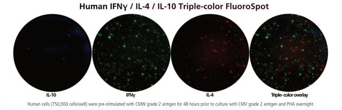Human IFN-γ/IL-4/IL-10 Three-Color FluoroSpot