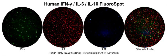 Human IFN-γ/IL-6/IL-10 Three-Color FluoroSpot