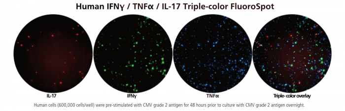 Human IFN-γ/TNF-α/IL-17 Three-Color FluoroSpot