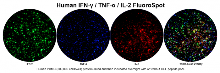 Human IFN-γ/TNF-α/IL-2 Three-Color FluoroSpot