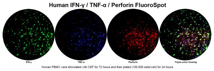 Human IFN-γ/TNF-α/Perforin Three-Color FluoroSpot