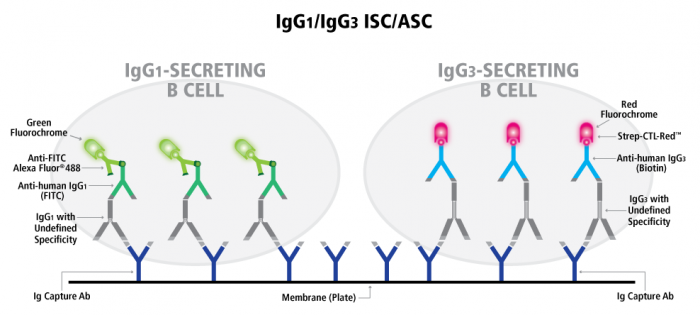 Human IgG1/IgG3 Double-Color FluoroSpot