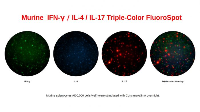 Mouse IFN-γ/IL-4/IL-17 Three-Color FluoroSpot