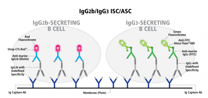 Mouse IgG2b/IgG3 Double-Color FluoroSpot