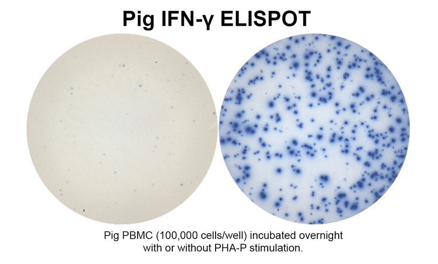 This optimized ELISPOT assay reliably detects and measures pig IFN-γ secretion by stimulated effector cells in frequencies as low as one in a million.